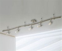 Eurofase Lighting 12492-015 Oil Rubbed Bronze / Frost Mercury Transitional Five Light Track Lighting Kit. Five Light Track Light Kit from the Mercury CollectionFive light track lighting featuring frosted glass shades2 48" track sections4 Ceiling support posts1 In-line connector2 End caps1 Power supply canopy for a 4" J-BoxRequires 5 50w GU10 base Halogen bulbs (included)