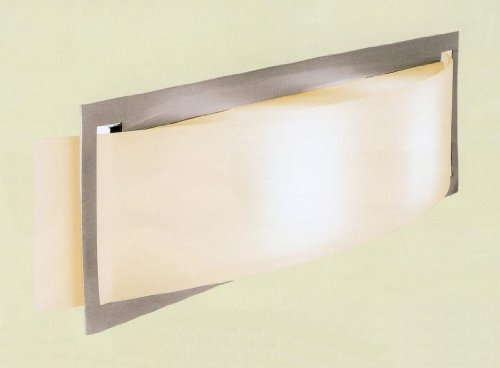 Mercury 2 Light Vanity Fixture. Gently curving opal glass, set in a rectangle metal brushed steel frame, create a noticeable contrast in this double wall vanity light. Glass plates above and below the socket hide hardware. Size is 24 inches wide x 5.25 inches high x 3.5 inches extension. Light uses two, 100 watt halogen T 3 78mm base bulb.