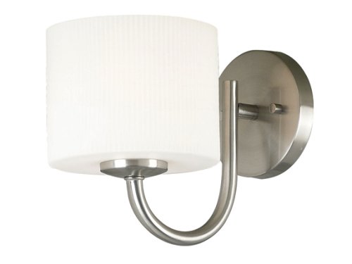 Kenroy Home 80331BS Matrielle One-Light Sconce. Ideal for contemporary or casual decors, this versatile fixture can be hung as an up or down light. Removing extension poles will allow it to mount close to ceiling. Ribbed glass completes this clean look.
