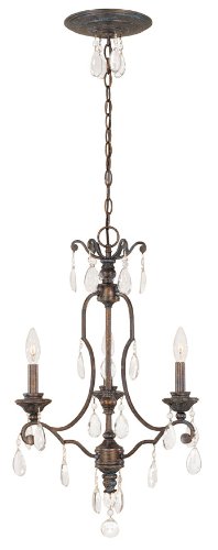 WI294366 This transitional collection features a multi-step, crackled mediterranean patina finish, clear teardrop crystals and a dressed oversized canopy. Bring modern styling with nostalgic flare into your home Features: -Three lights chandelier. -Palermo collection. -Mediterranean patina finish. Specifications: -Accommodates 3x60W. -Canopy: 8'' D. -Overall dimensions: 23.5'' H x 18'' D.